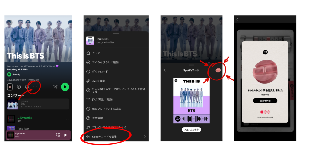 三点リーダーをクリックし一番したの Spotifyコードを表示をクリック