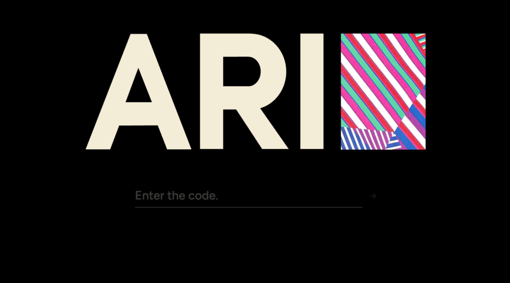 リンク開いてみましたが「ARI🔳」と大きな文字と、下には「Enter the code」あり何らかのコードを入力するようですが、今現在はコード入力はできませんでした。