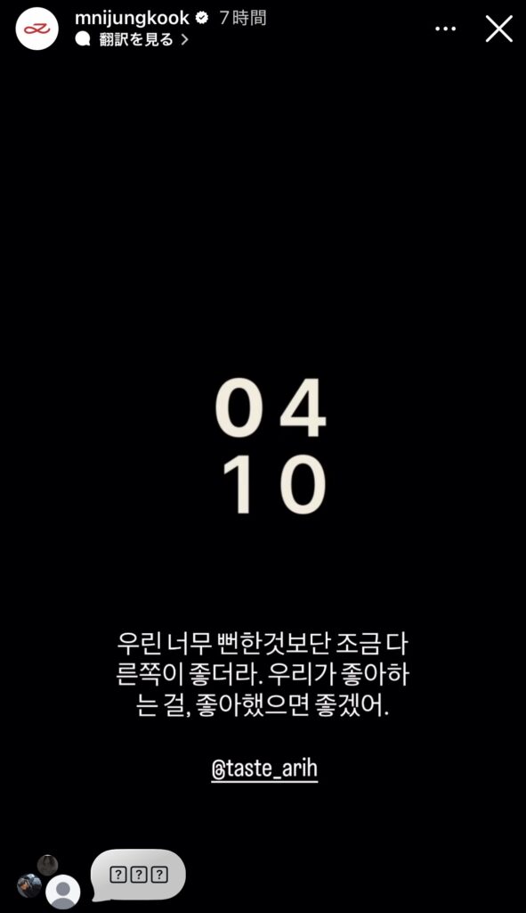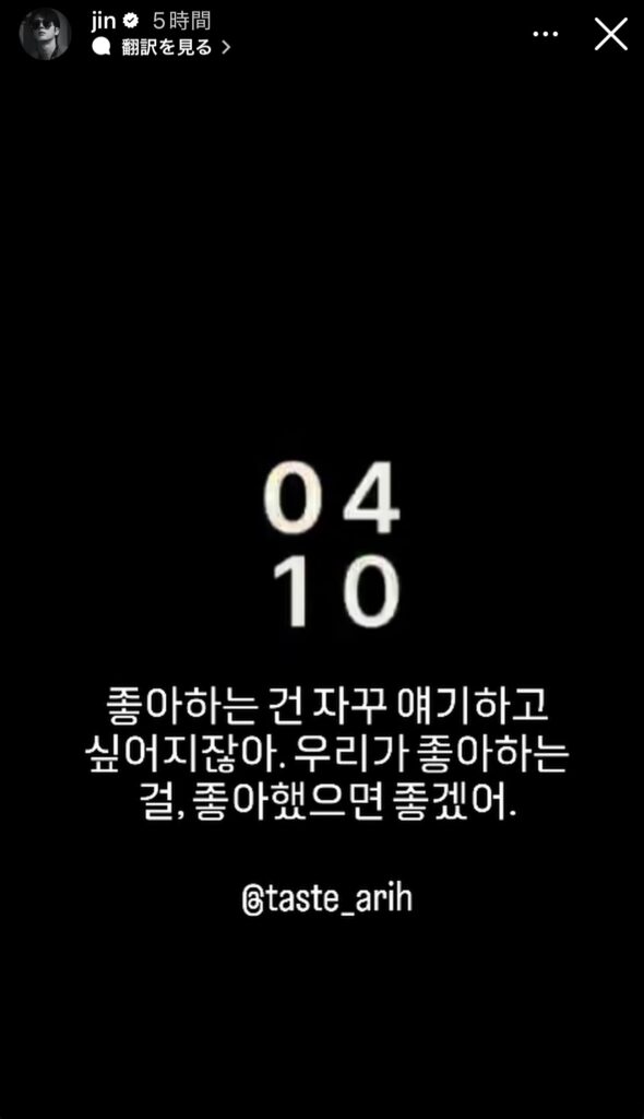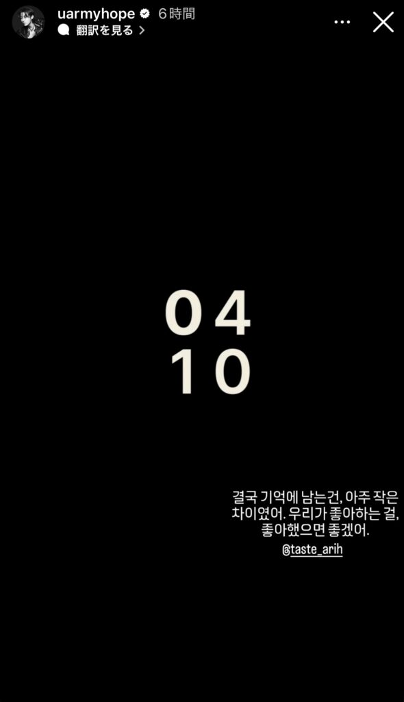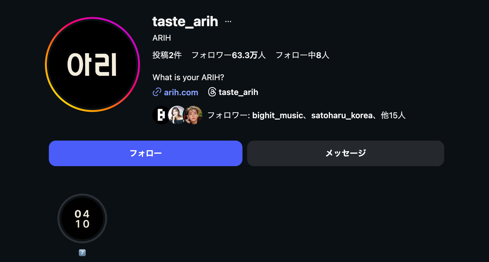 また、全員の投稿の「0410」の後に「아리」の文字が出てきます。