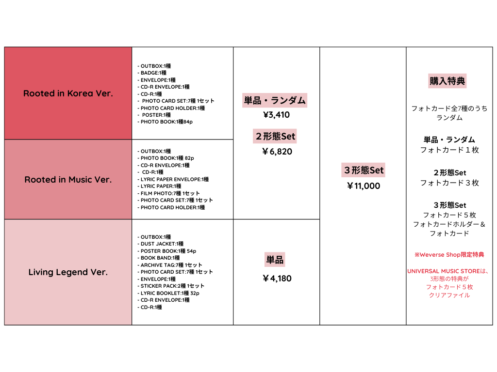 ※Vinyl(レコード)は上記2ショップ(Weverse、UNIVERSAL MUSIC STORE)限定